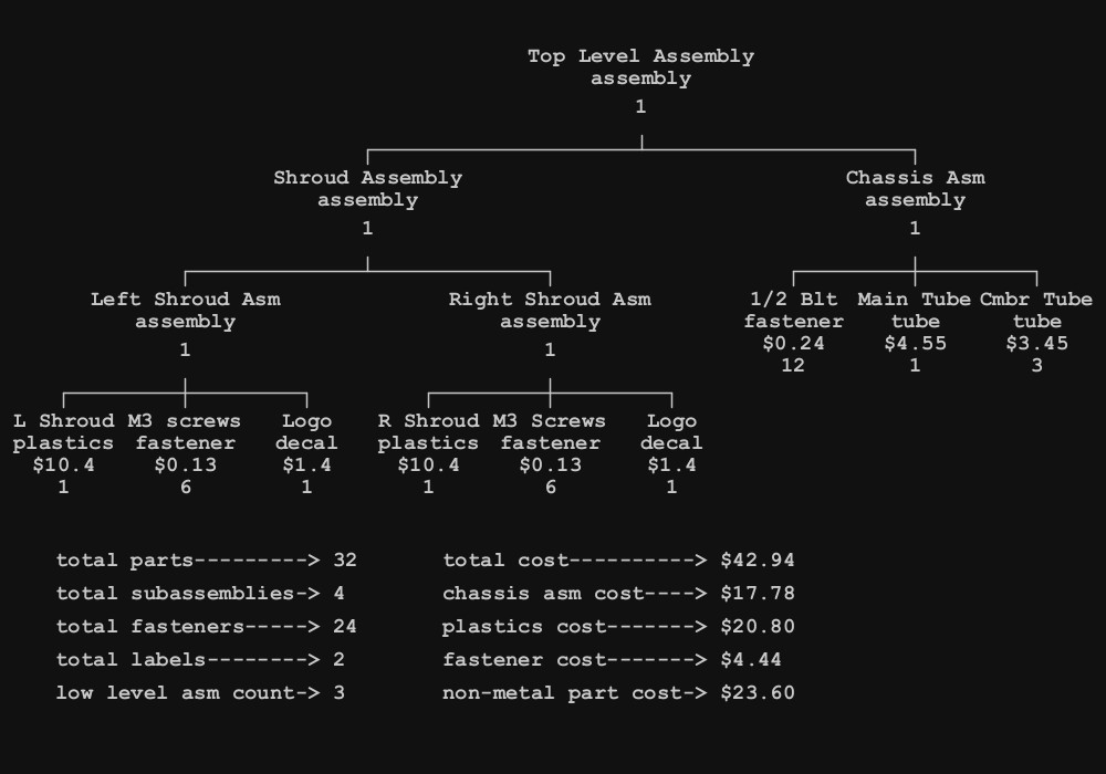 Below is an example of a recursive method, getTotalCost, that takes a node and fetches the cost of that node by calculating bottom up from the node leaves.