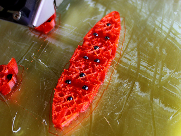 This lure prints in one piece and has multiple hinged segments that loosen up once the lure is bent back and forth a few times. This gives it a swimming action and it has internal chambers for adding metal bbs for rattles.